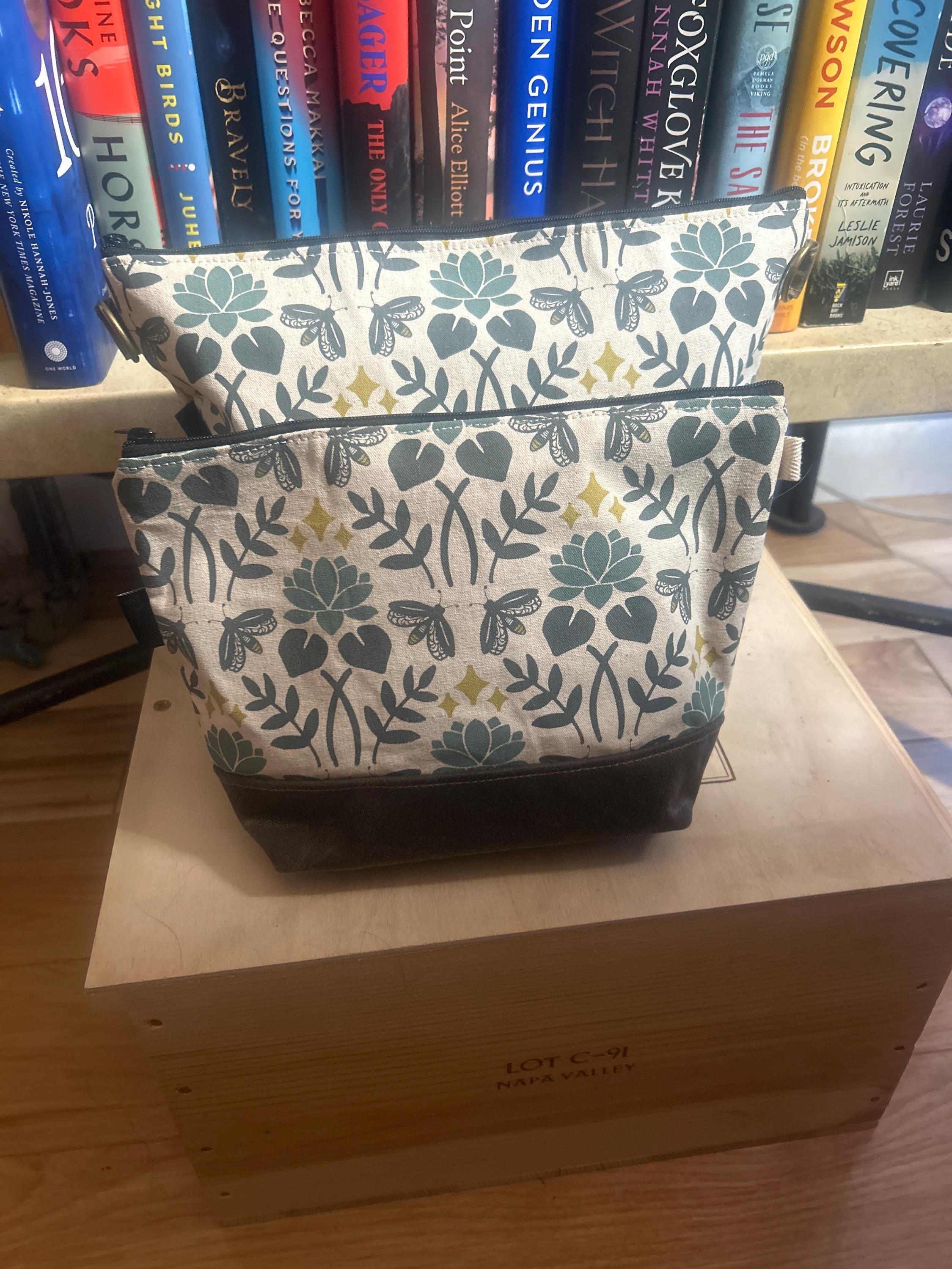 The most beautiful bags,I use them for knitting projects,I like that they hold a sock project and the little pouch..I use the pouch for scissors,tape measure and other needed things for a project.