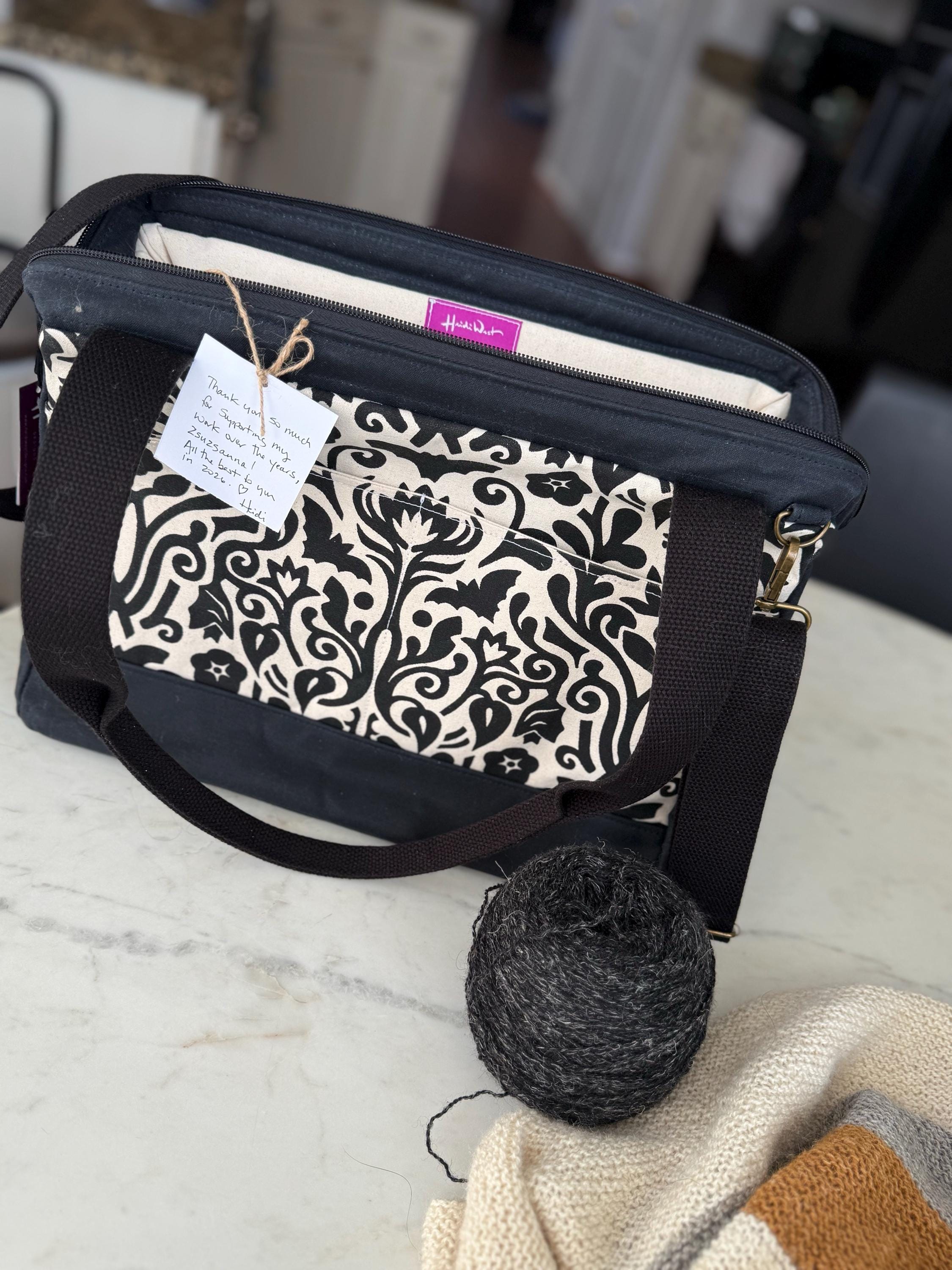 This bag is OUTSTANDING. By far, the best knitting bag I have found. It can double as a larger purse if needed. It's the only bag I have found that accommodates a large knitting project (sweaters) without the sacrificing efficiency and style. I couldn't be happier.