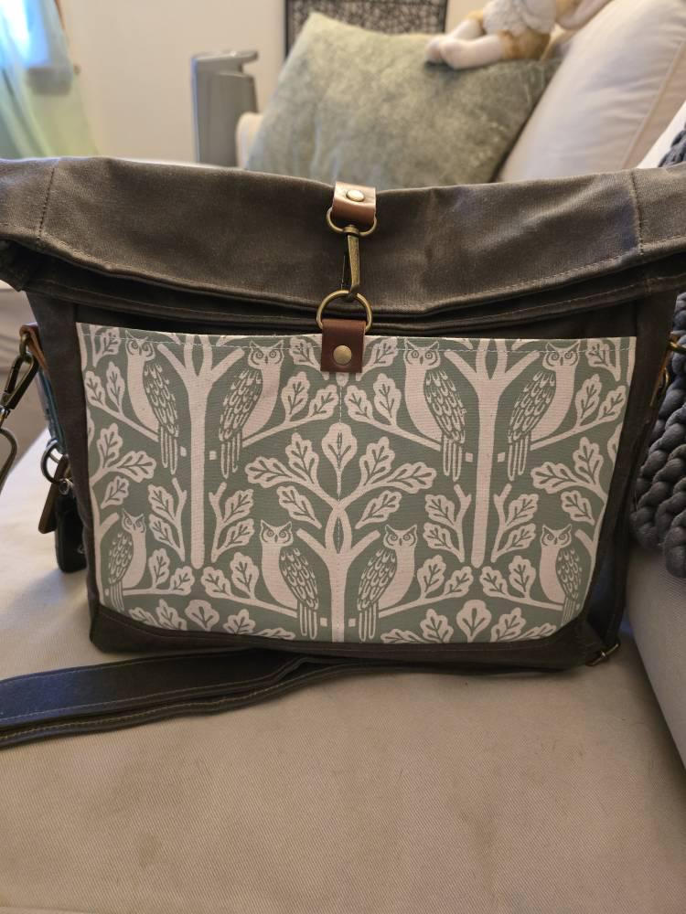 This large waxed canvas cross body bag/purse holds so much stuff and it’s also water resistant.