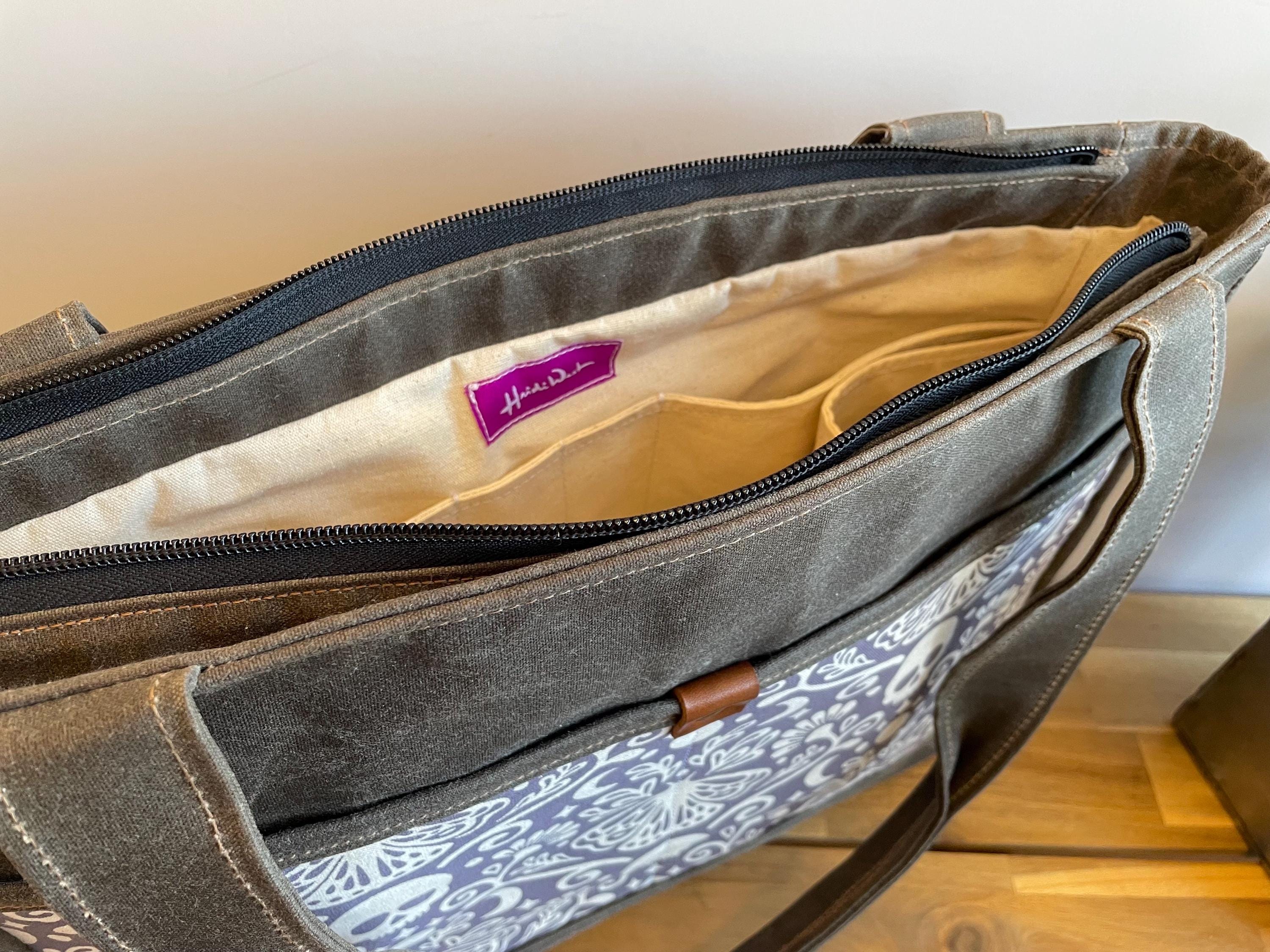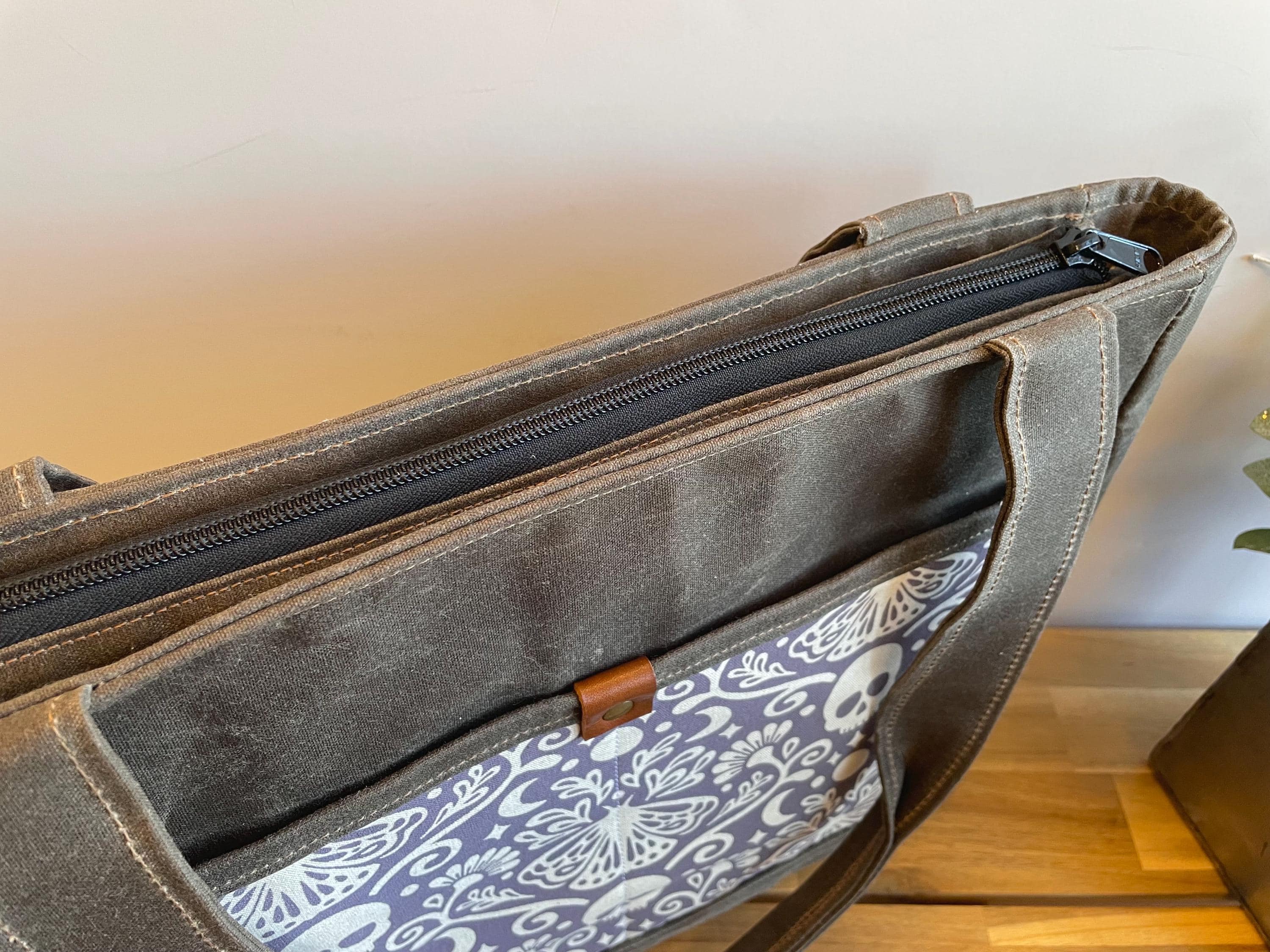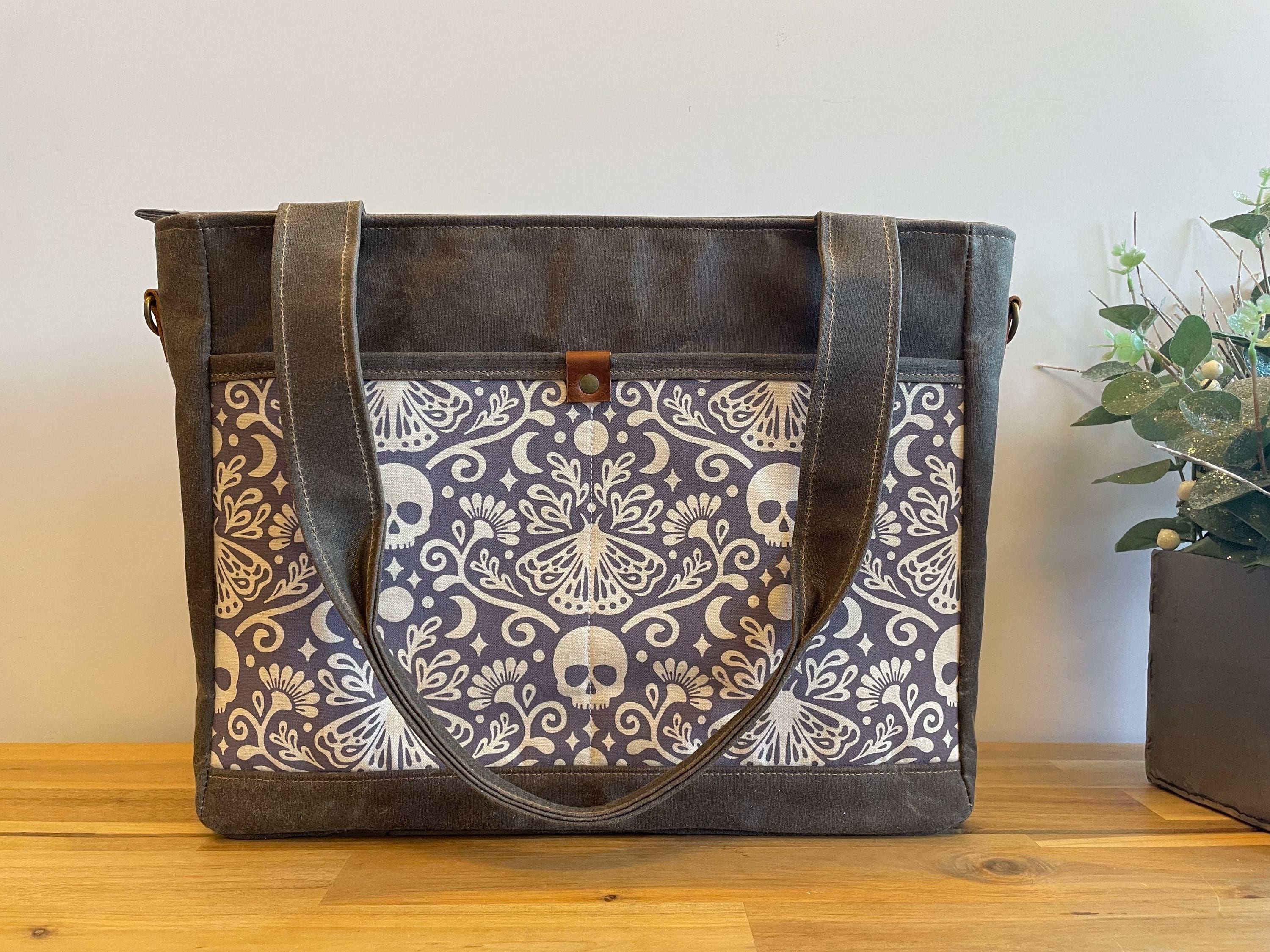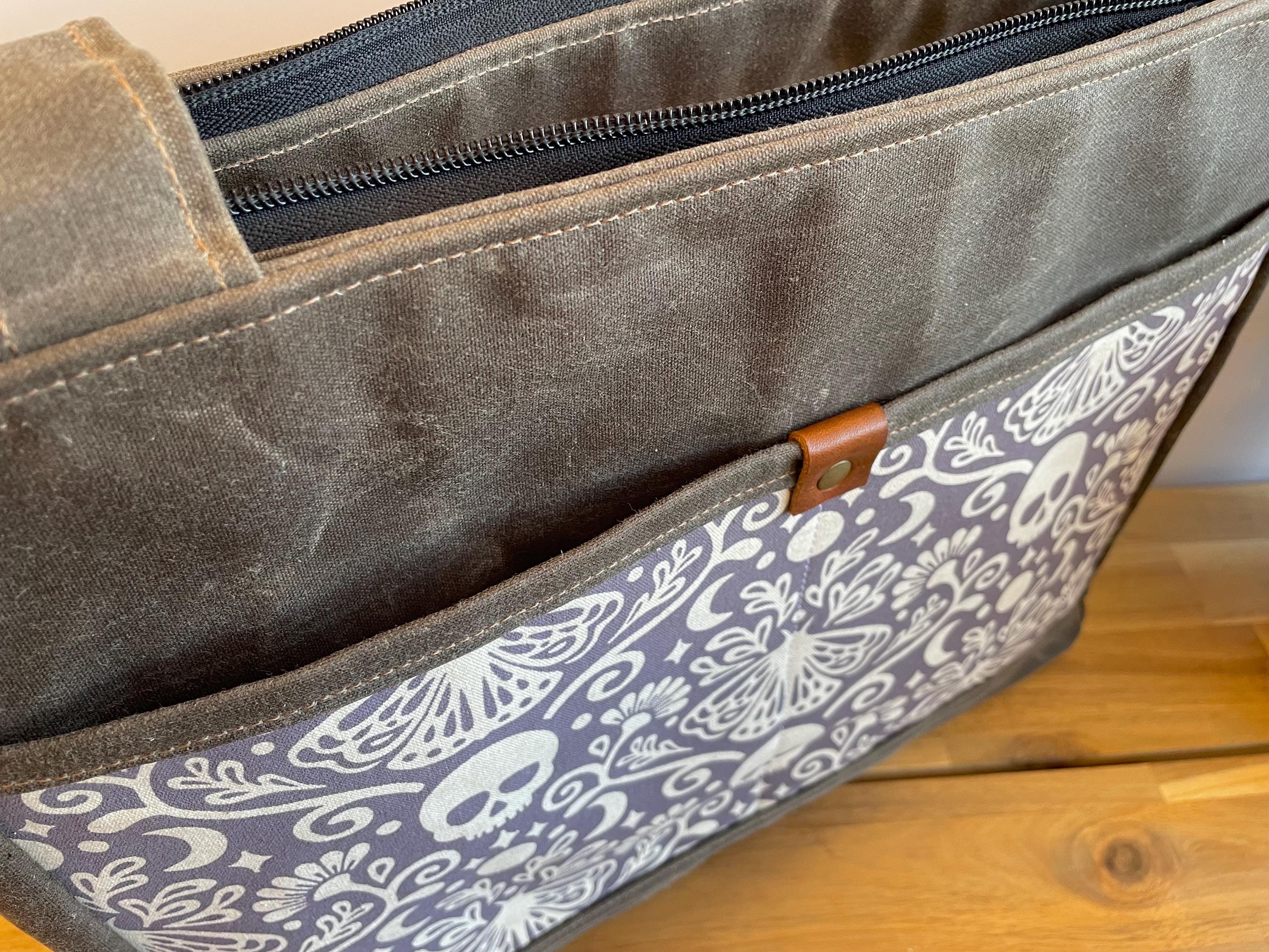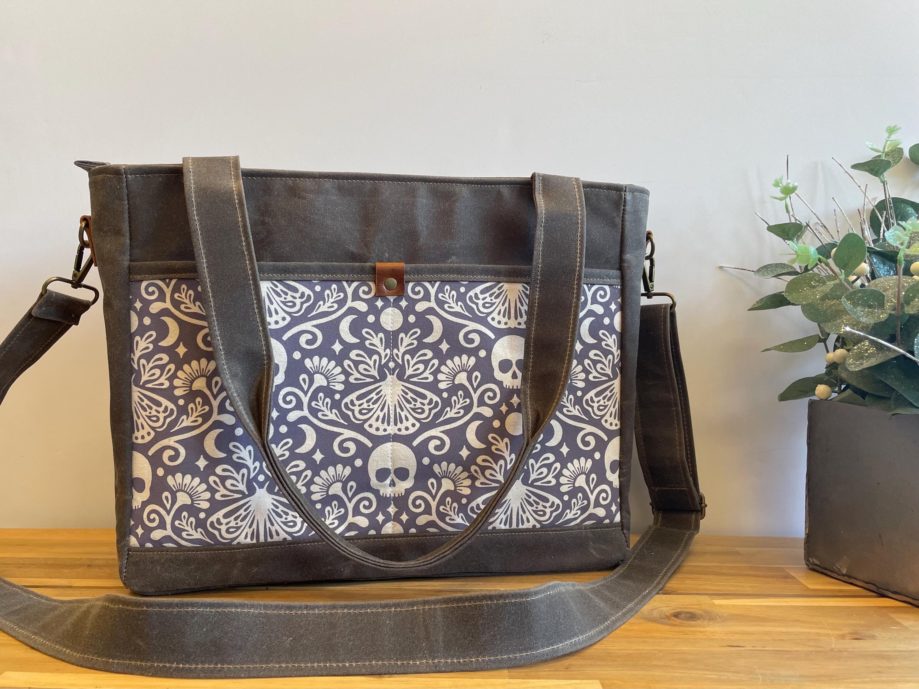 Waxed Canvas Knitting Laptop Bag: Mystical Moth Print