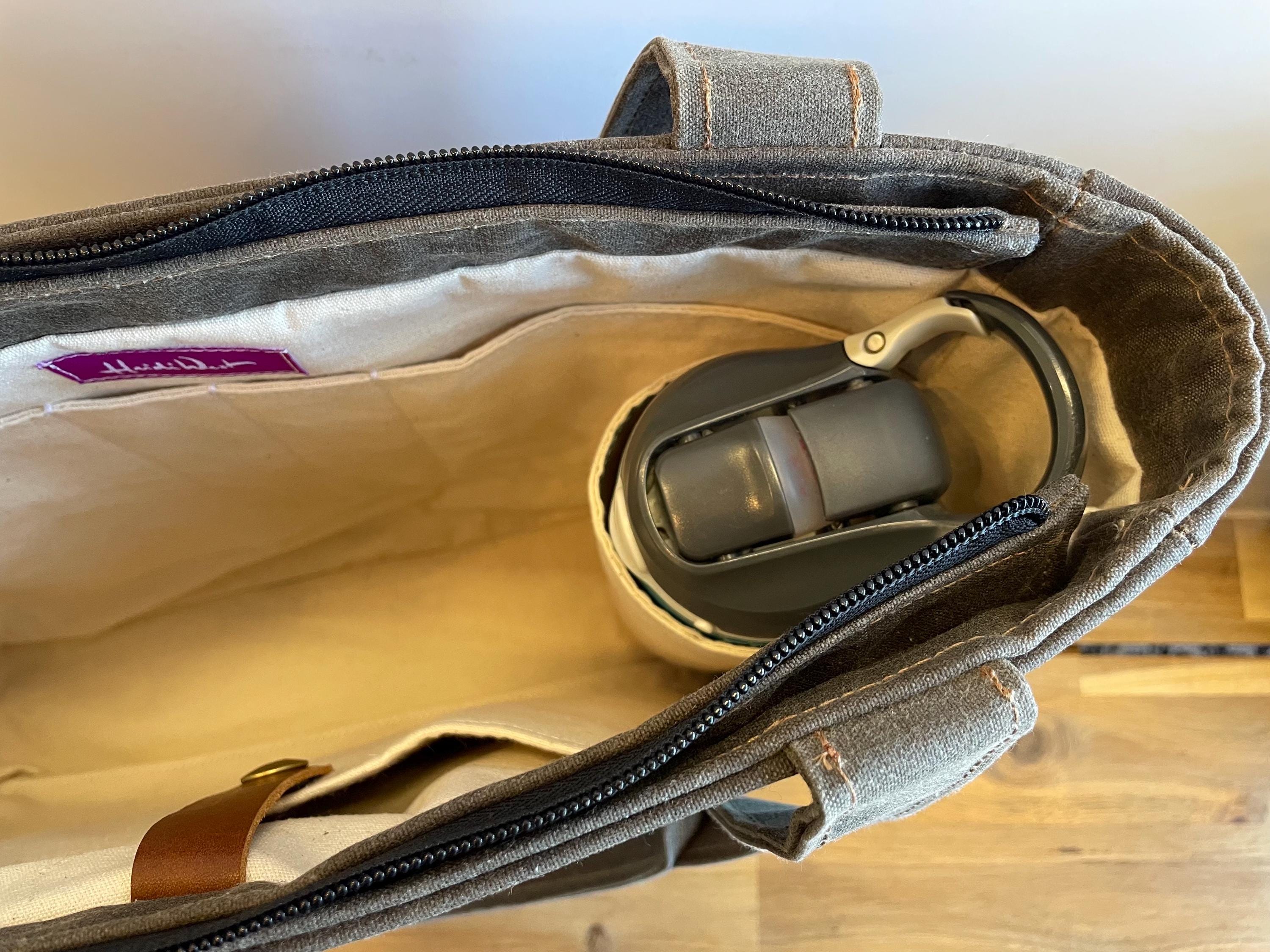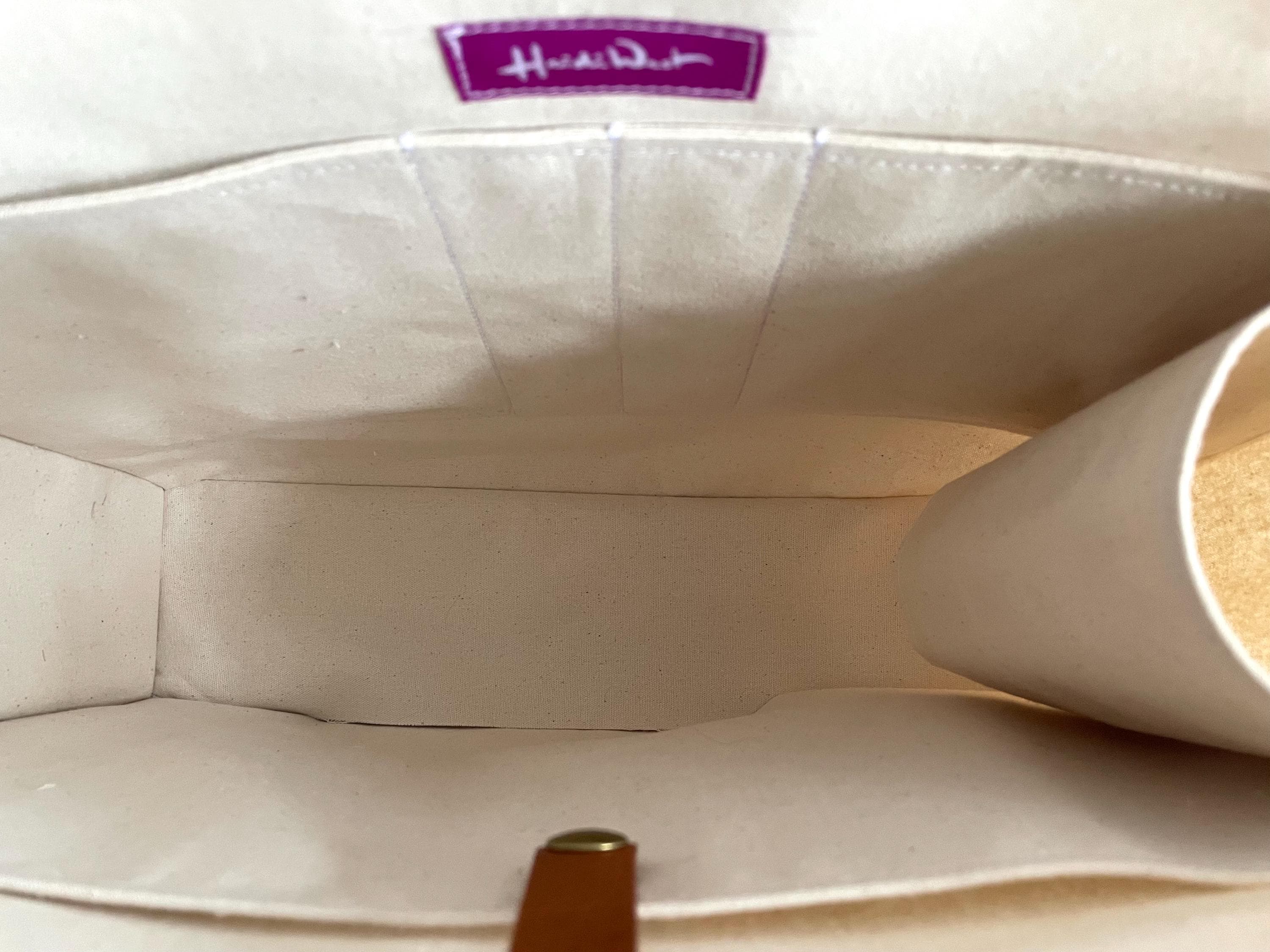 I created the bag design, designed the front panel fabric, screen printed the fabric panel and then sewed it all together in Portland, Oregon.
