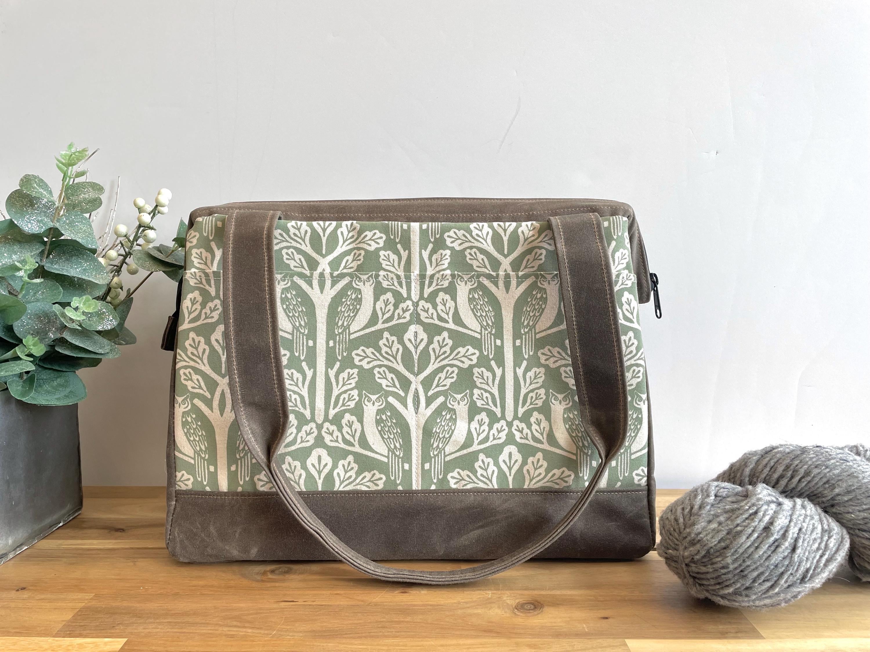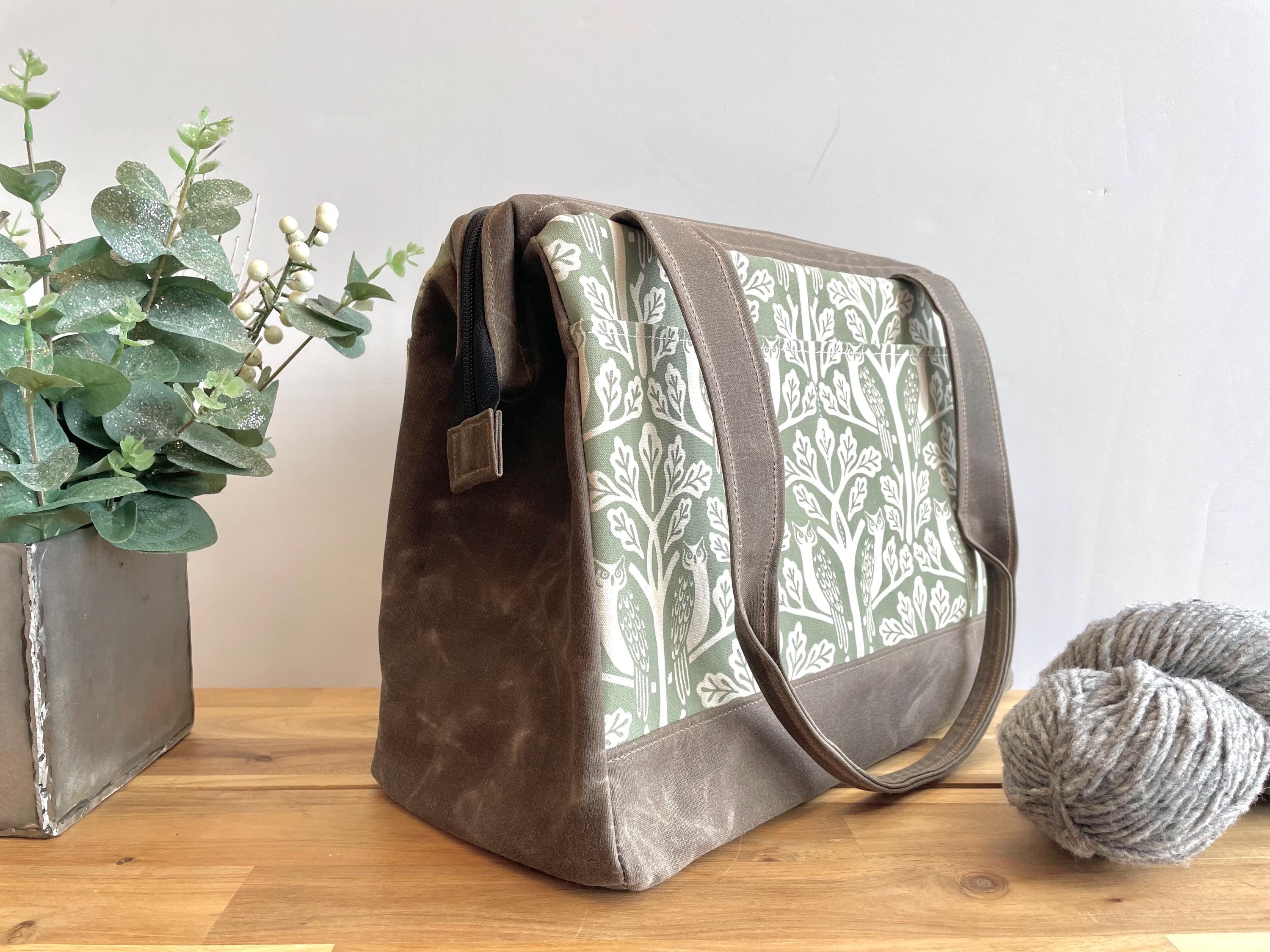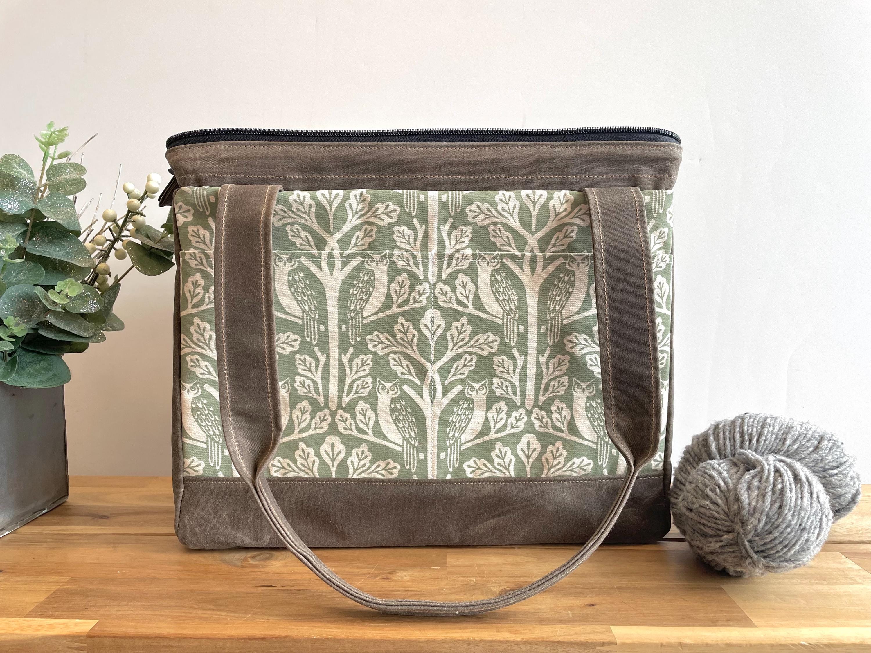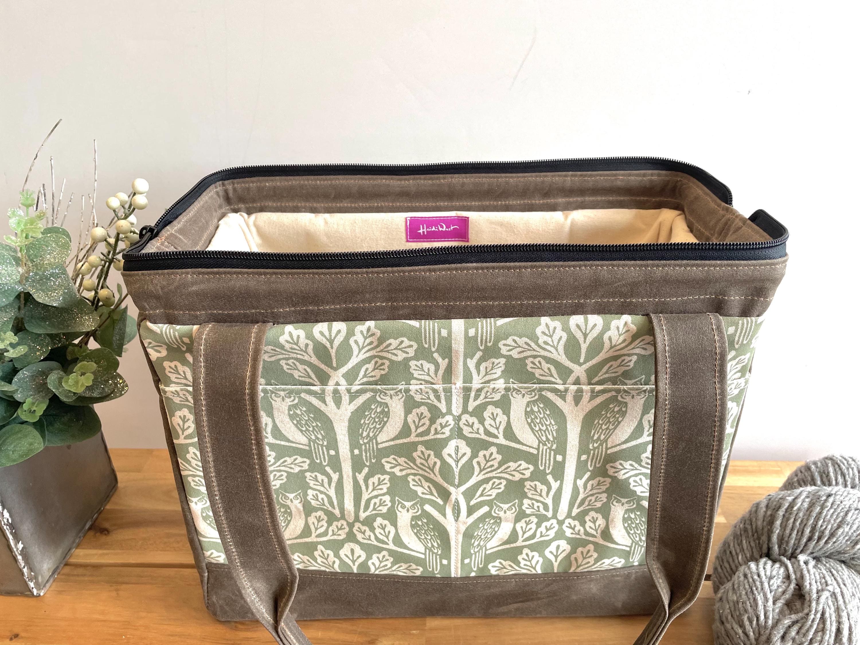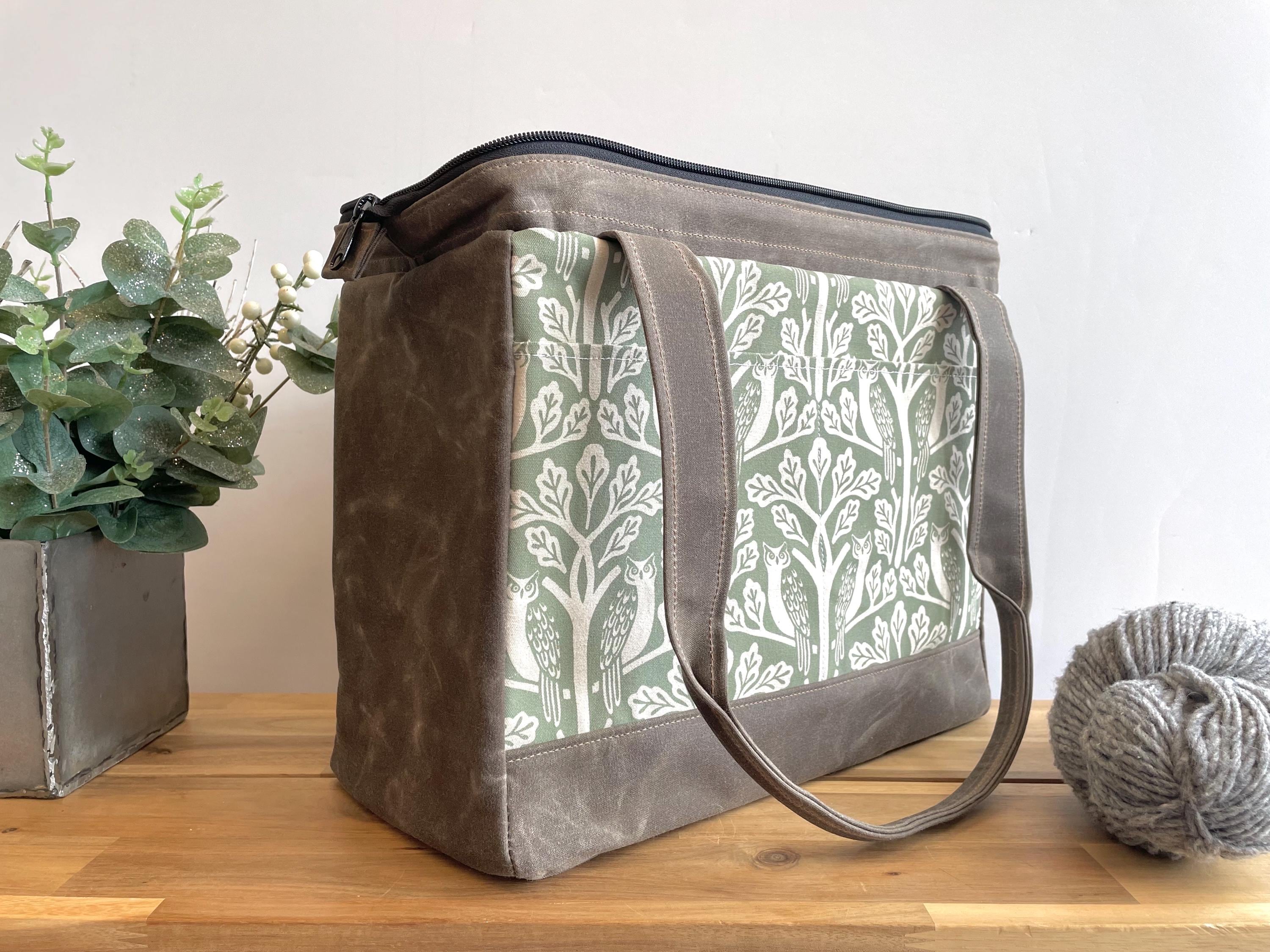 This craft tool bag is perfect for knitting, crocheting or other art/craft projects when you’re on the go. This bag features hidden metal bars that keep the bag open.