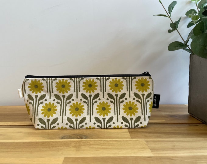 February Violets Zipper Pouch: Hand Printed Waxed Canvas Cosmetic Bag